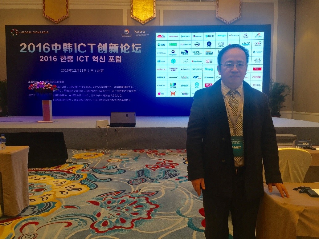 在2016中韩ICT创新论坛,杜博士与韩国专家进行了ICT技术交流,结合乐动通信工程学院在ICT领域的成果和优势,探讨了在联合实验室、项目合作、技术协作和推广等方面与韩国企业和机构开展国际技术合作,增强了韩国ICT企业和机构对乐动通信工程学院的了解,为学院今后进一步开展中韩创新创业合作打下了基础。