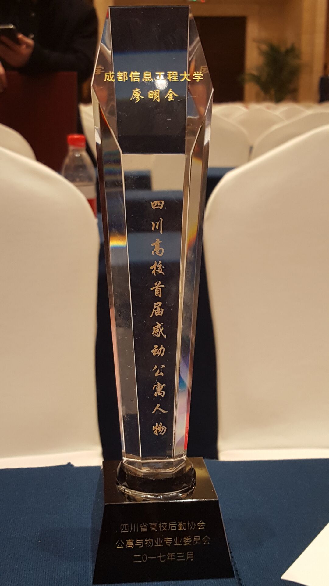 大会对四川省高校首届十大“感动公寓人物”进行表彰及颁奖。乐动后勤服务公司维修技师廖明全同志通过层层选拔,最终脱颖而出,获此殊荣。