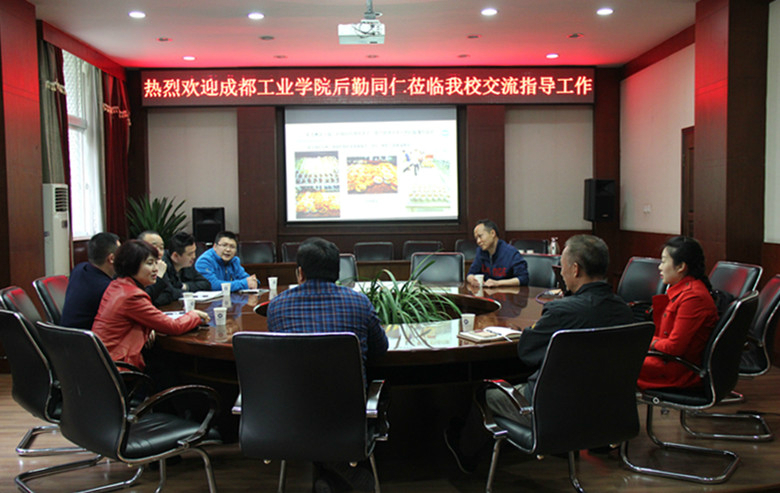 【本网讯】4月1日,成都工业学院后勤服务集团副总经理闫泓一行5人到乐动交流考察饮食服务相关工作。乐动后勤管理处处长袁世斌及相关工作人员参加会议。
