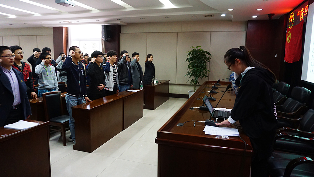 在学员代表闫泽云同学的带领下,全体学员举起右拳,面向团旗,重温了入团誓词,并郑重承诺:认真学习马克思主义中国化的最新成果,不断丰富马克思主义理论功底,增强政治素养、提升思想境界、优化能力结构、锤炼作风品格,争做国家和民族的栋梁之材。