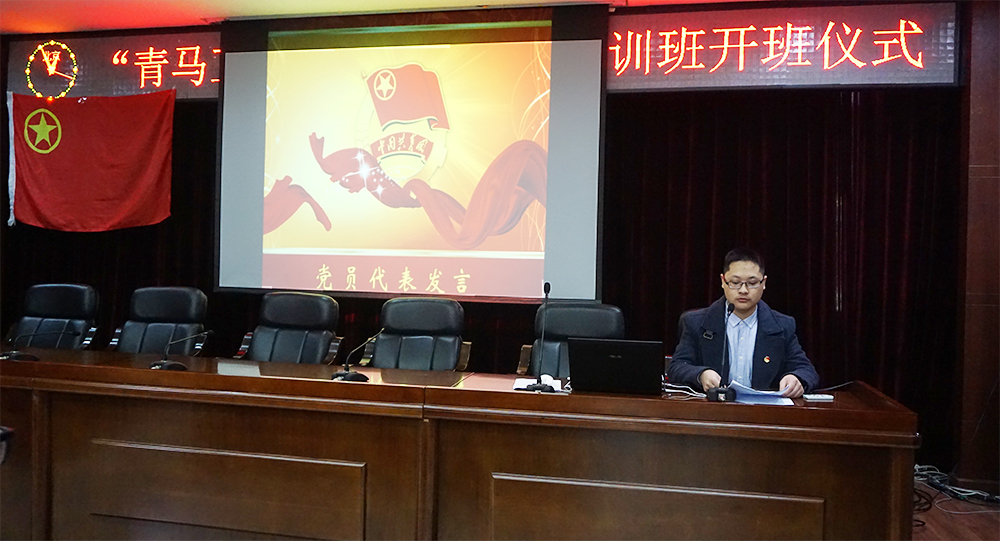 开班仪式在现场齐唱团歌中正式拉开序幕。学生党员代表李晓峰发言,他祝贺“青马工程”团校第六期培训班开班,并希望学员们珍惜荣誉和机会,端正学习态度,勤于学习钻研,争做学有所获、学有所成、学有所用的模范。