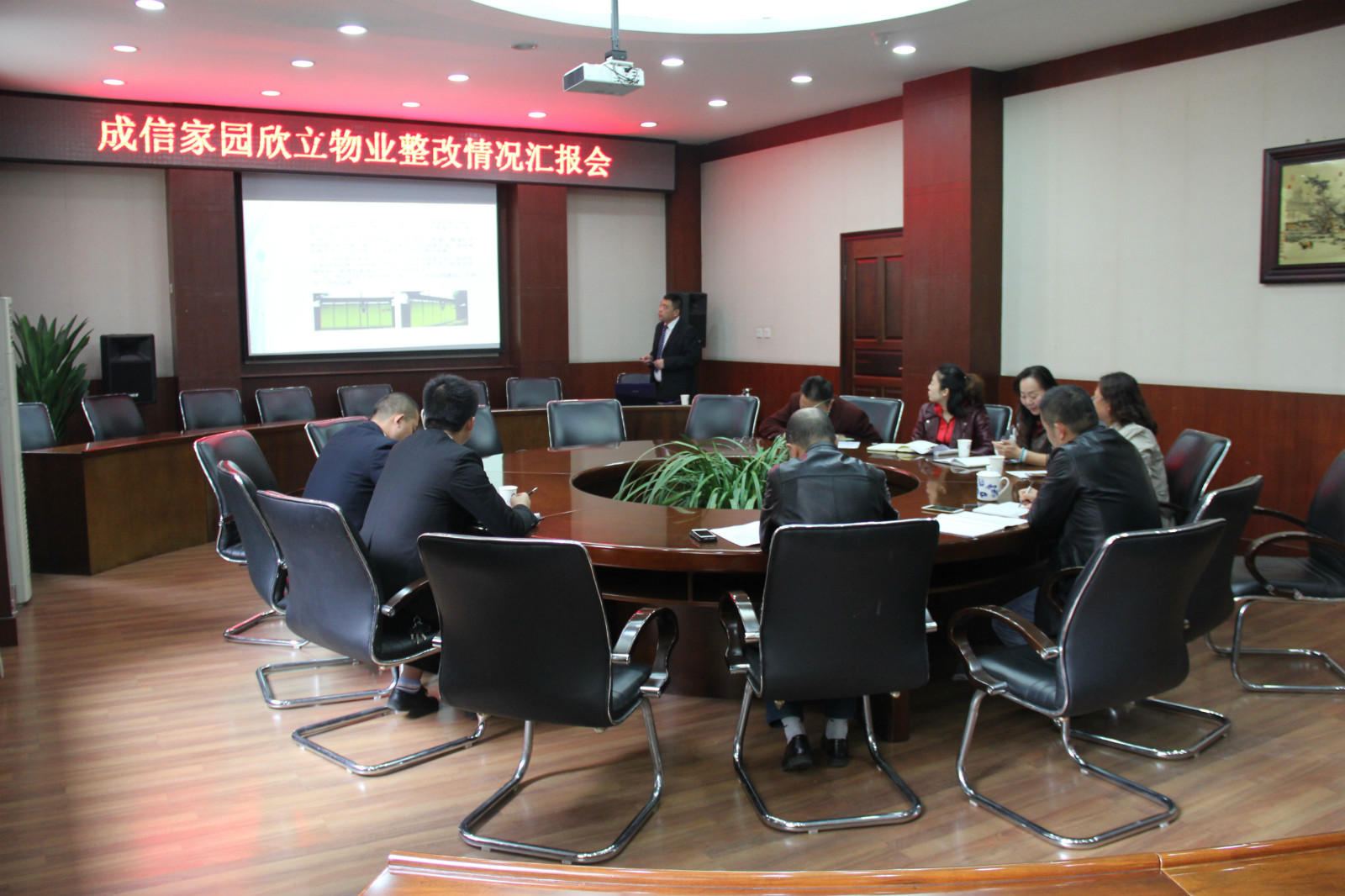 【本网讯】4月6日下午,成信家园欣立物业整改情况汇报会在行政楼第六会议室召开,成信家园住户委员会、校工会、后勤管理处等相关负责人、住户代表及成都欣立物业服务有限公司(以下简称:欣立物业)代表参加了会议。会议由后勤管理处处长袁世斌主持。