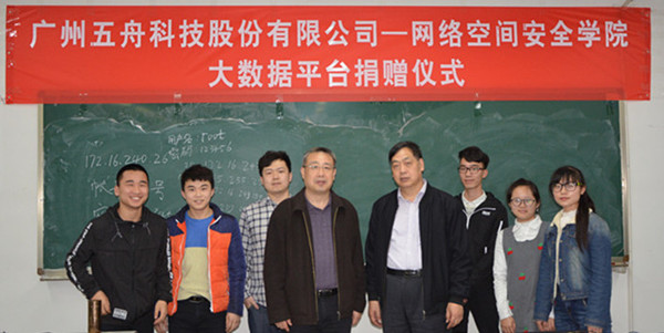 【本网讯】近日,网络空间安全学院与广州五舟科技股份有限公司就双方共建“五舟大数据与安全工程中心”,并就云计算与大数据应用与安全专业建设、师资培养等方面内容进行了深入沟通交流。双方商定在乐动挂牌成立“五舟大数据与安全工程中心”,中心主任由五舟科技CTO武志学博士担任,网络空间安全学院院长李飞教授任副主任。同时,五舟科技向我院捐赠S904G1高密度双路服务器和“云计算和大数据教育和实训平台”,用于工程中心的科研和专业教学、实训等工作。双方表示,今后将在科研、教学、人才培养等领域开展多样化的校企合作模式。