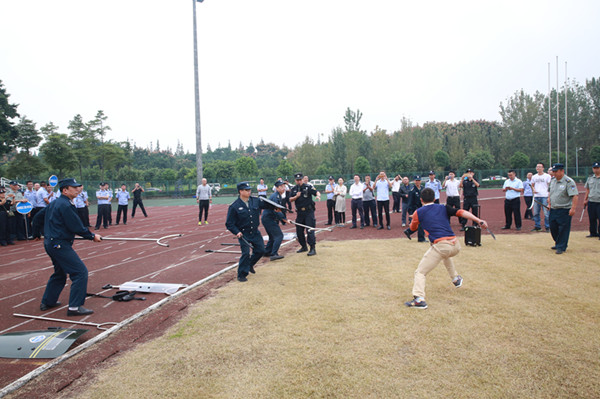 培训会上,双流公安分局巡警大队中队长薛奇教官对目前反恐防暴形势及案例、反恐防暴器械进行了详细的介绍。介绍包括身处暴力事件环境中如何开展“自救”、“保护”、“反抗”三个方面进行了讲解,参训人员分组进行了反恐防暴模拟演练。