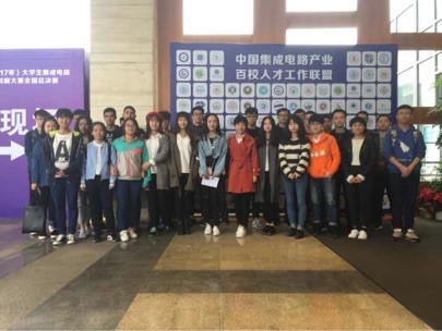 【本网讯】10月14日下午,第七届(2017年)大学生集成电路设计-应用创新大赛全国总决赛颁奖典礼暨中国集成电路产业百校人才工作联盟发起成立仪式在成都市双流区举行。通信工程副院长马文英一行7人参加了“中国集成电路产业百校人才联盟”筹备会和发起仪式。