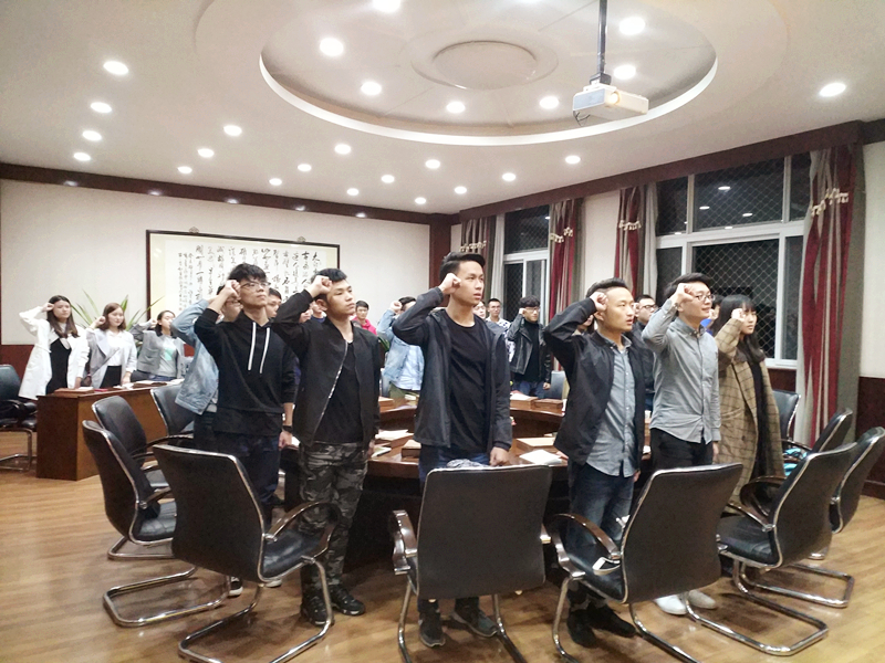 学员代表、校学生会主席沈能宇发言,他谈到学生干部应该用言行举止树立榜样模范、做好表率,励精图治、博学笃思,树立良好学生干部的形象。他代表广大学员承诺:作为中国共产主义青年团的一员,将始终奔赴在时代前沿,通过不断学习,提高自身素养,坚定矢志不渝走中国特色社会主义道路的信念,为实现“中国梦”而奋发努力。