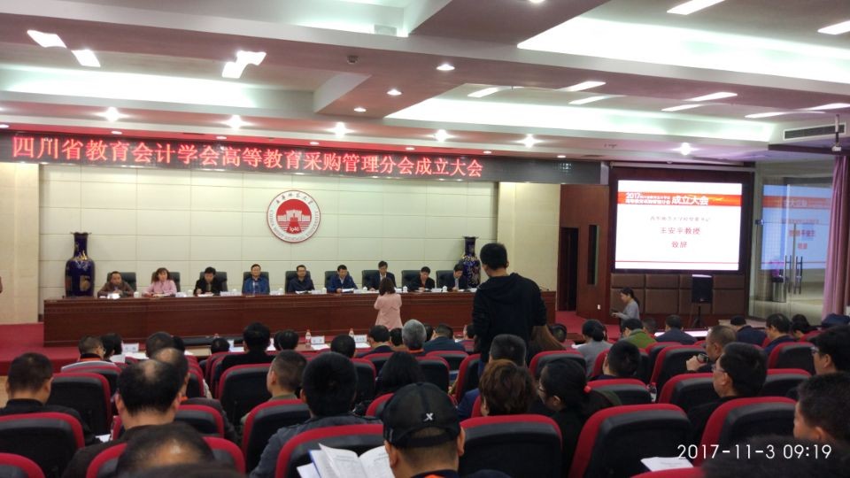 【本网讯】11月3至4日,由四川省教育会计学会主办、西华师范大学承办的四川省教育会计学会高等教育采购管理分会(以下简称采购分会)成立大会在西华师范大学华凤校区举行。西华师范大学党委书记王安平,中山大学政府采购与招投标管理中心主任贾延江,四川省教育厅财务管理处处长王羽,北京师范大学财经处处长陆兆老参加会议并作了重要发言。省内共51所高校政府采购主管人员参加会议,乐动资产管理处相关人员也参加了本次大会。