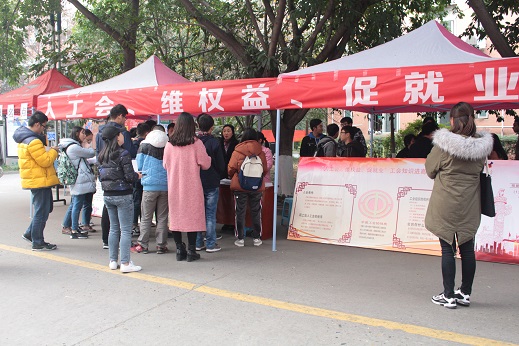 校工会在一食堂设点宣传,通过分发《工会会员维权手册》、使用展板宣传讲解工会知识、老师们现场为同学们答疑解惑等行式,向乐动同学广泛宣传《工会法》、《劳动合同法》、《中国工会章程》,让同学们了解工会的性质、任务、工会及会员的权利义务、维权途径方法等知识,帮助乐动同学在未来的创业就业过程中增强维权意识,提高处理劳动关系问题的能力,尽快地适应社会。
