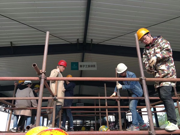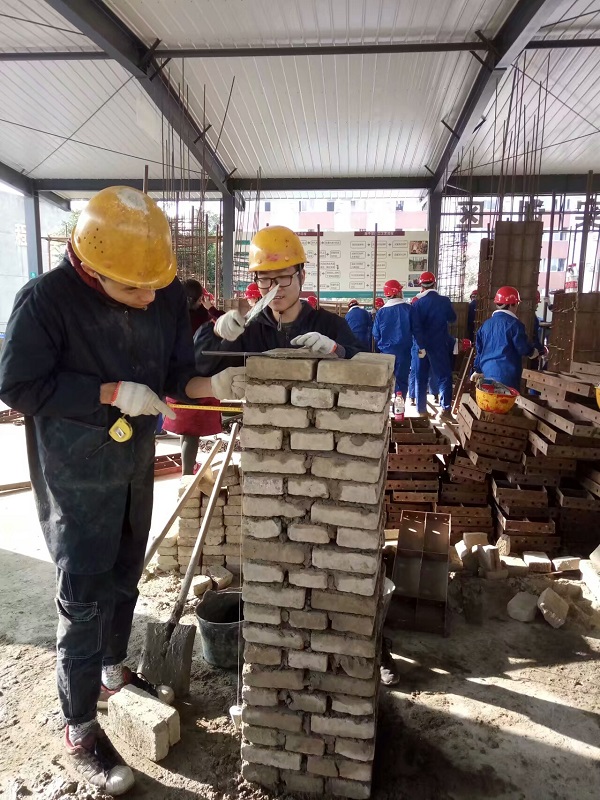 实训活动中,同学们学习了砖墙体砌筑、墙面抹灰、灰筋灰饼的制作等详细工艺,成功制作出了合格的箍筋,并对箍筋进行了绑扎;学习制作各种模板,完成了脚手架和安全通道的搭建。