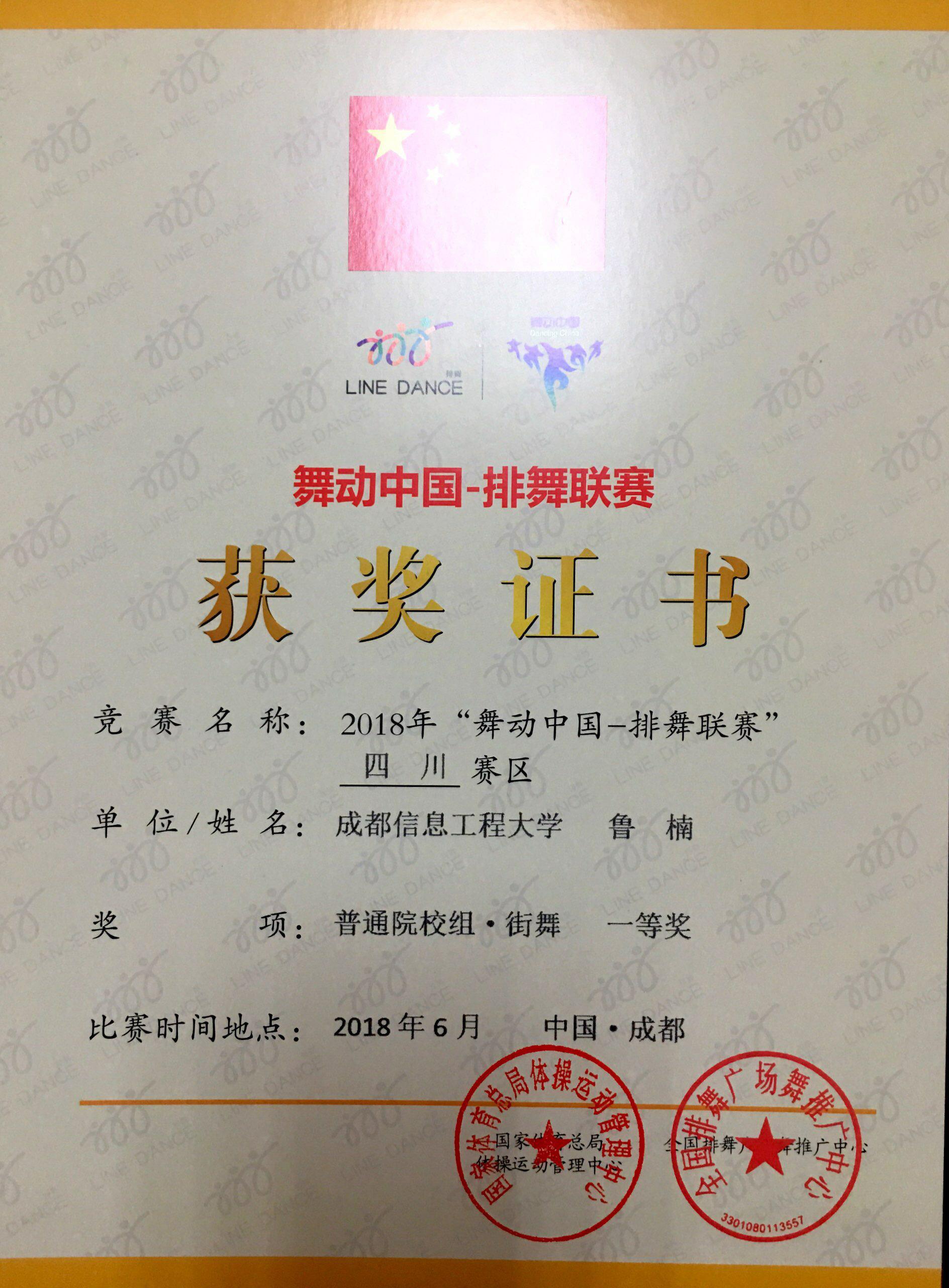 此次比赛共有来自全省各地市州的90个单位149支代表队,共2500余名运动员参赛。经过激烈角逐,乐动大学生艺术团DC街舞队通过优异的表现、精湛的表演,凭借舞蹈作品《舞动成信》,荣获“2018年舞动中国-排舞联赛 (四川赛区)暨第三届四川省学生排舞比赛”普通院校组街舞自编项目的一等奖。