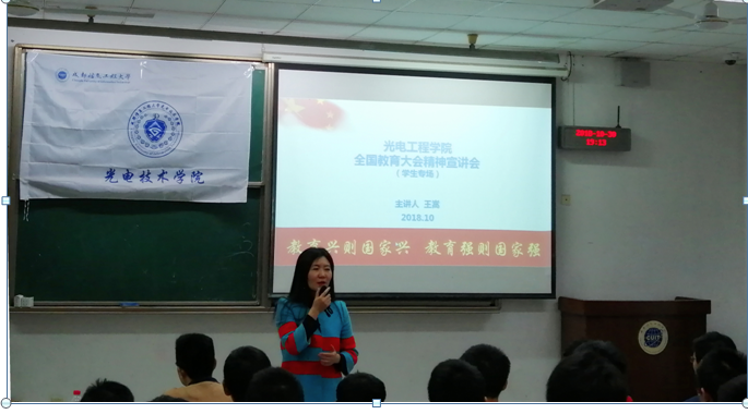 【本网讯】10月26日,光电技术学院召开教职工大会学习习近平总书记在全国教育工作大会上的讲话精神。会议由党总支书记王嵩主持。