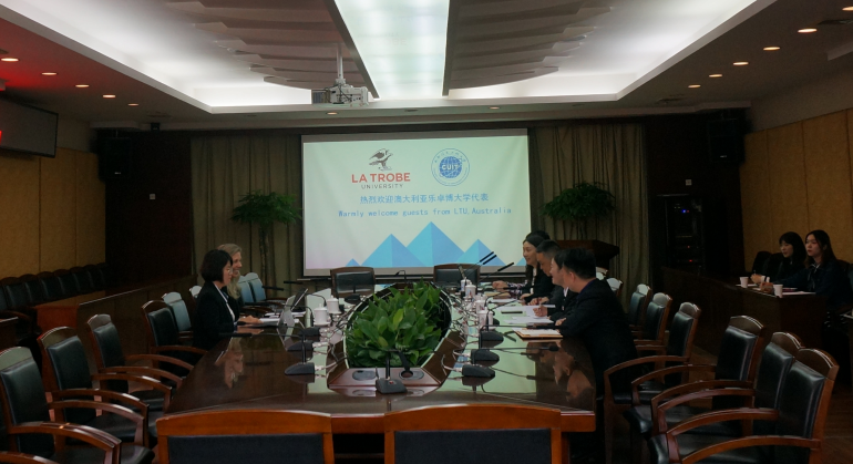 【本网讯】10月14日,澳大利亚乐卓博大学(La Trobe University) 学部学术副校长Sonia Reisenhofer,北京办公室负责人李晓秋来乐动交流访问。学校副校长范广洲、计算机学院副院长冯翱在行政楼第七会议室与来访人员进行了交流座谈。会议由国际交流与合作处处长何嘉主持。