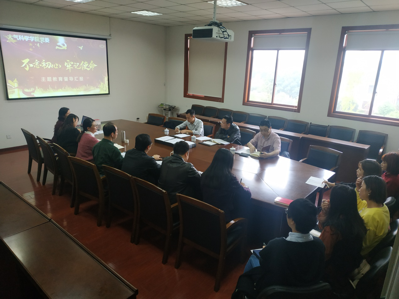 【本网讯】10月30日下午,学校党委副书记马洪江带队到大气科学学院党委开展了“不忘初心、牢记使命”主题教育调研督导工作,并指导了学院党委中心组“党史、新中国史”学习研讨会。