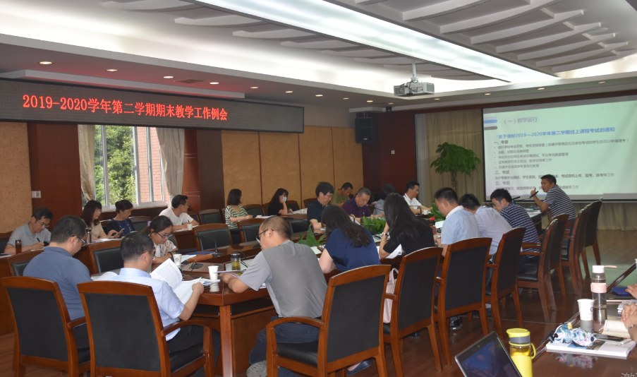 【本网讯】6月11日下午,学校在航空港校区第七会议室召开2019-2020学年第二学期期末教学工作例会,各学院(中心、部)党委书记(总支书记)、主管本科教学工作负责人、教务科科长,教务处、教学评估中心负责人等参加了会议。会议由教务处处长方睿主持。