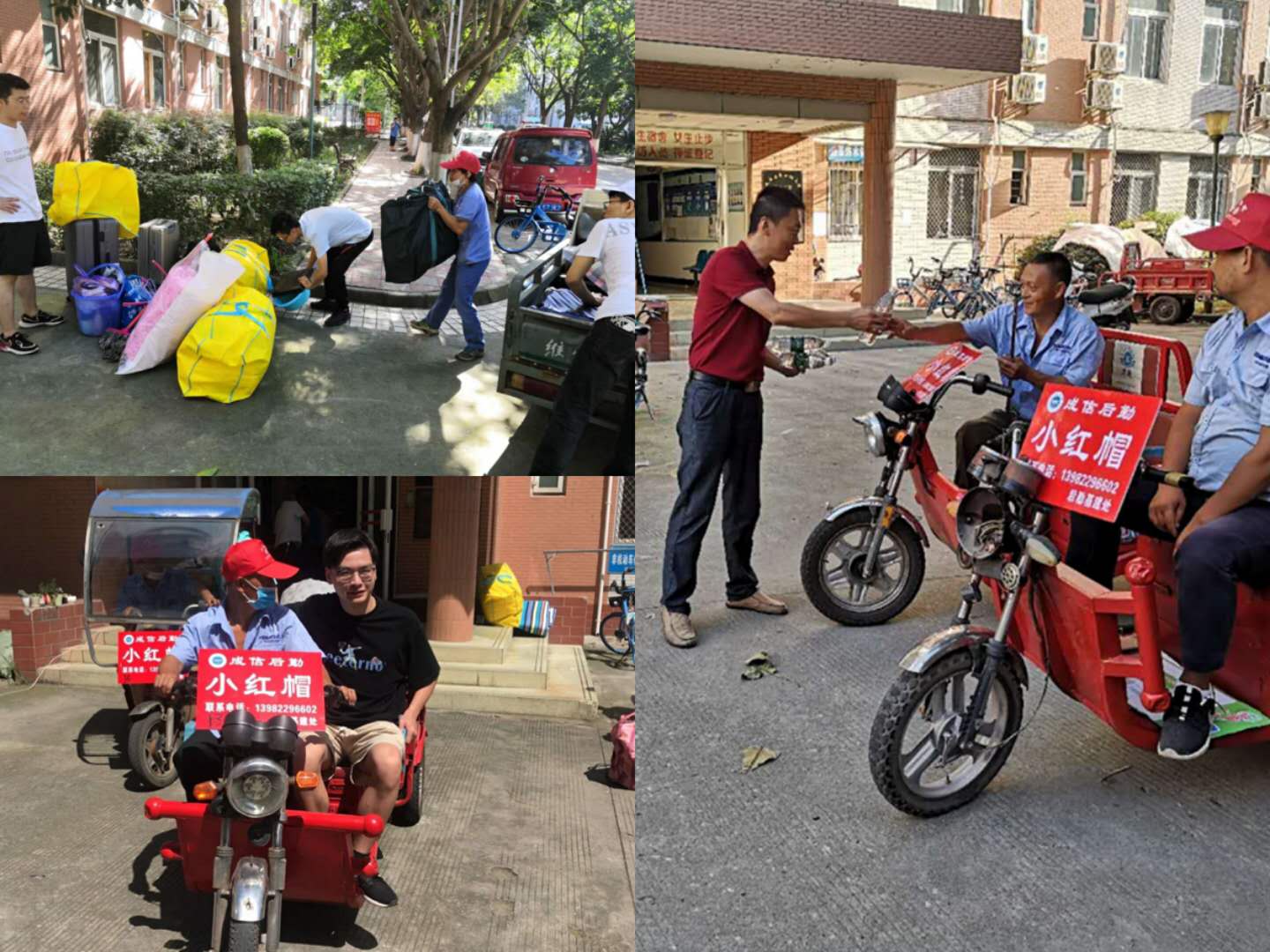 因本次寝室调整时间紧、任务重,又正值老生返校和新生入学前夕,为确保寝室搬迁工作安全、有序、顺利进行,后勤基建处在分管校领导的指导下,从物业管理服务中心、学生公寓管理服务中心临时抽调数名工作人员、24辆工作车临时组建后勤“小红帽”服务车队,免费助力学生们搬运物品。