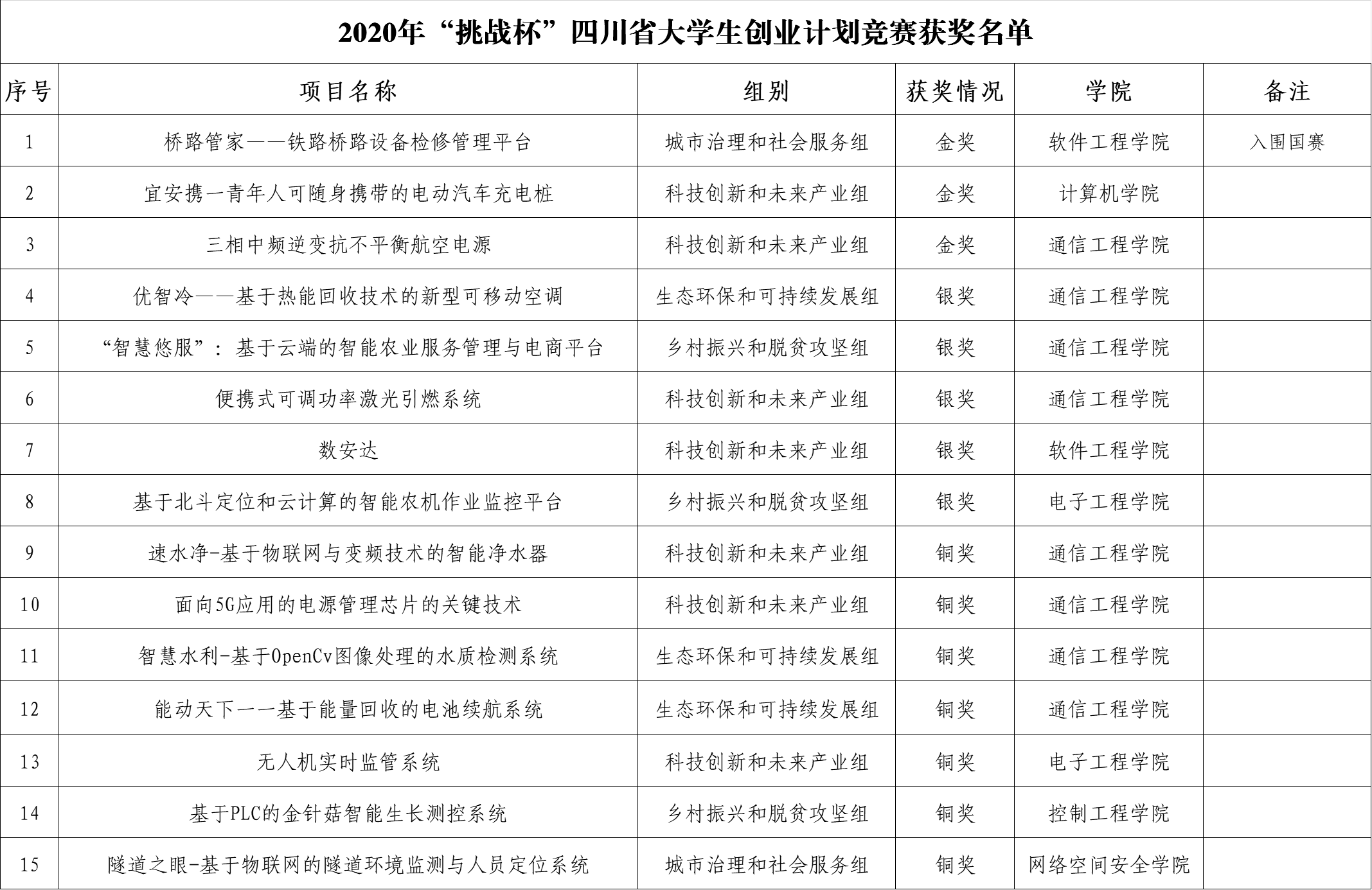 【本网讯】近日,由团省委、省委组织部、教育厅、省科协、省社科院、科技厅、人力资源与社会保障厅、省学联联合主办,四川轻化工大学承办的2020年“挑战杯”中国农业银行四川省大学生创业计划竞赛公布获奖名单。乐动共获得金奖3项、银奖5项、铜奖7项,其中金奖项目,来自软件工程学院的《桥路管家——铁路桥路设备检修管理平台》获得评委一致青睐,被推报参加2020年“挑战杯”中国大学生创业计划竞赛全国决赛。