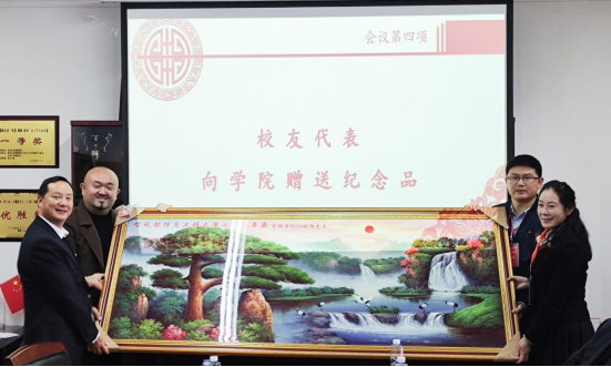 校友代表表达对母校和老师们的感恩之情,为母校的发展感到由衷的自豪和骄傲,并向学院赠送了饱含对母校深深祝福的纪念品。希望学院能以建校70周年为契机,搭建校友互动平台,共生共享资源,创造共同发展的双赢格局。