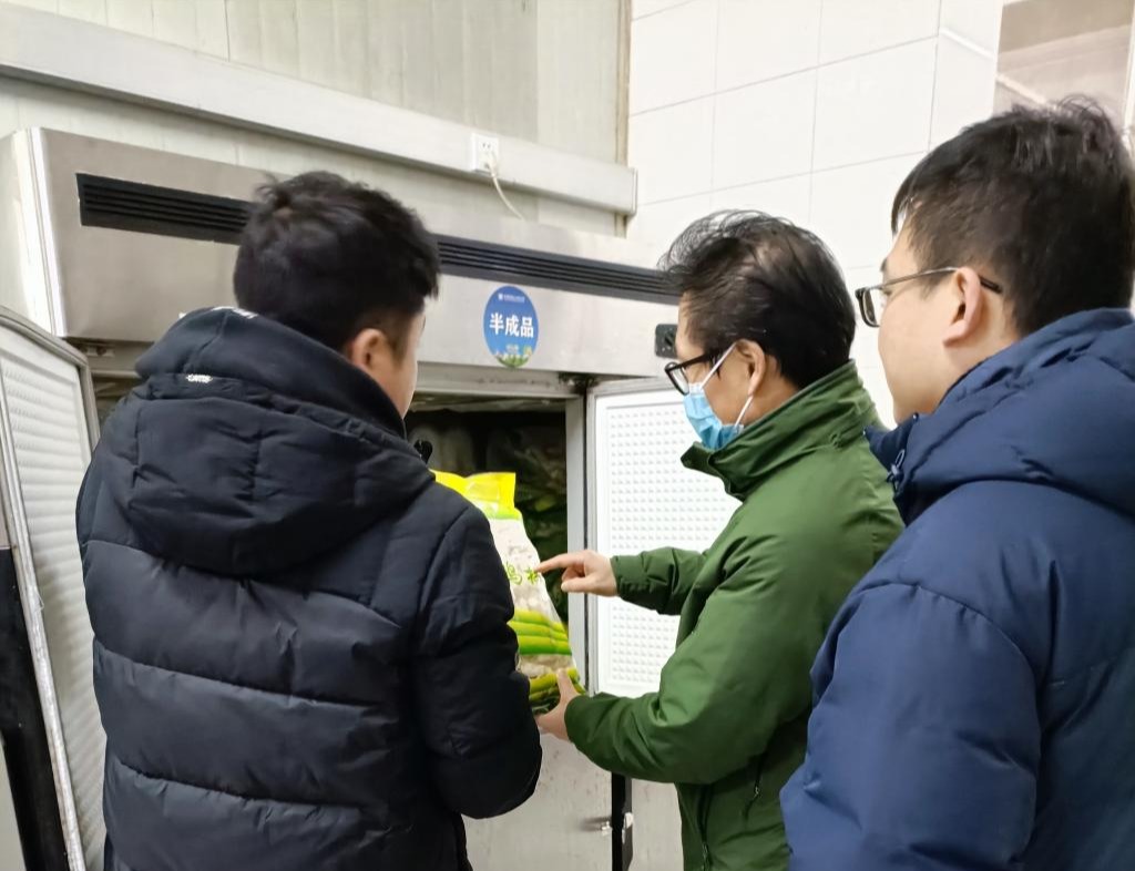 于世祥通过查看相关工作台账、实地检查、现场询问等方式,检查了校内快递点及食堂冷库的防控管理。在菜鸟驿站快递点,仔细检查了现场通风、包裹及车辆消杀、从业人员规范佩戴口罩、防疫物资准备、执行测温扫码等情况,详细询问了外地包裹的流入过程。在食堂冷库,重点检查了冷链食品专柜贮存情况,详细询问了出入库流程并抽样检查了食品生产日期。