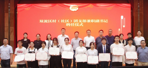 【本网讯】5月26日下午,双流区村(社区)团支部副书记聘任仪式在乐动航空港校区国际会议厅举行。学校党委副书记马洪江,双流区东升街道党工委书记刘伟、黄甲街道党工委书记尹宏波,学校党委组织部、宣传部、学生工作部、校团委以及双流区东升街道、黄甲街道团工委相关负责人参加了聘任仪式。聘任仪式由校团委书记丁恒康主持。