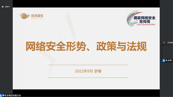 主题讲座邀请到启明星辰集团副总裁、网络安全资深专家罗春先生。罗春以“网络安全形势,政策与法规”为主题,以生动的案例让同学们了解到当前网络安全的现状、未来网络安全的发展趋势,提升了同学们预防网络安全问题的意识和能力。讲座结束后,学院学生代表发起了线上网络文明倡议,并宣读了网络文明倡议书,号召全校师生争当倡导网络文明新风、净化网络环境、促进和谐稳定的好网民。