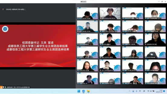 【本网讯】11月26日,学校第三次学生代表大会暨第三次研究生代表大会顺利召开。成都市学生联合会驻会主席侯佳含,学校党委副书记马洪江,学校党委宣传部、学生工作部、研究生处、校团委负责人,各学院团委书记以及272名学代会、研代会正式学生代表线上出席本次大会,大会采用腾讯会议平台线上同步直播,本次会议由第二届学生会主席团成员张宇凡主持。