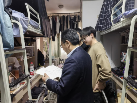同学们对于校院领导老师们走近学生宿舍表示欢迎,并承诺一定遵守学校管理规定,保持积极乐观的心态,培养健康文明的生活方式,积极复习备考,怀抱梦想又脚踏实地,敢想敢为又善作善成,立志做有理想、敢担当、能吃苦、肯奋斗的新时代好青年。