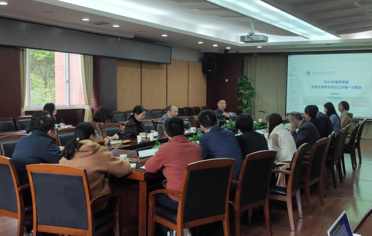 【本网讯】4月6日上午,学校2023年春季学期研究生培养与学位工作第一次例会在第七会议室组织召开。学校副校长何建新,各主管研究生院长(分管副院长)、教学秘书,研究生处负责人及相关工作人员参加了会议。会议由研究生处处长陈权亮主持。