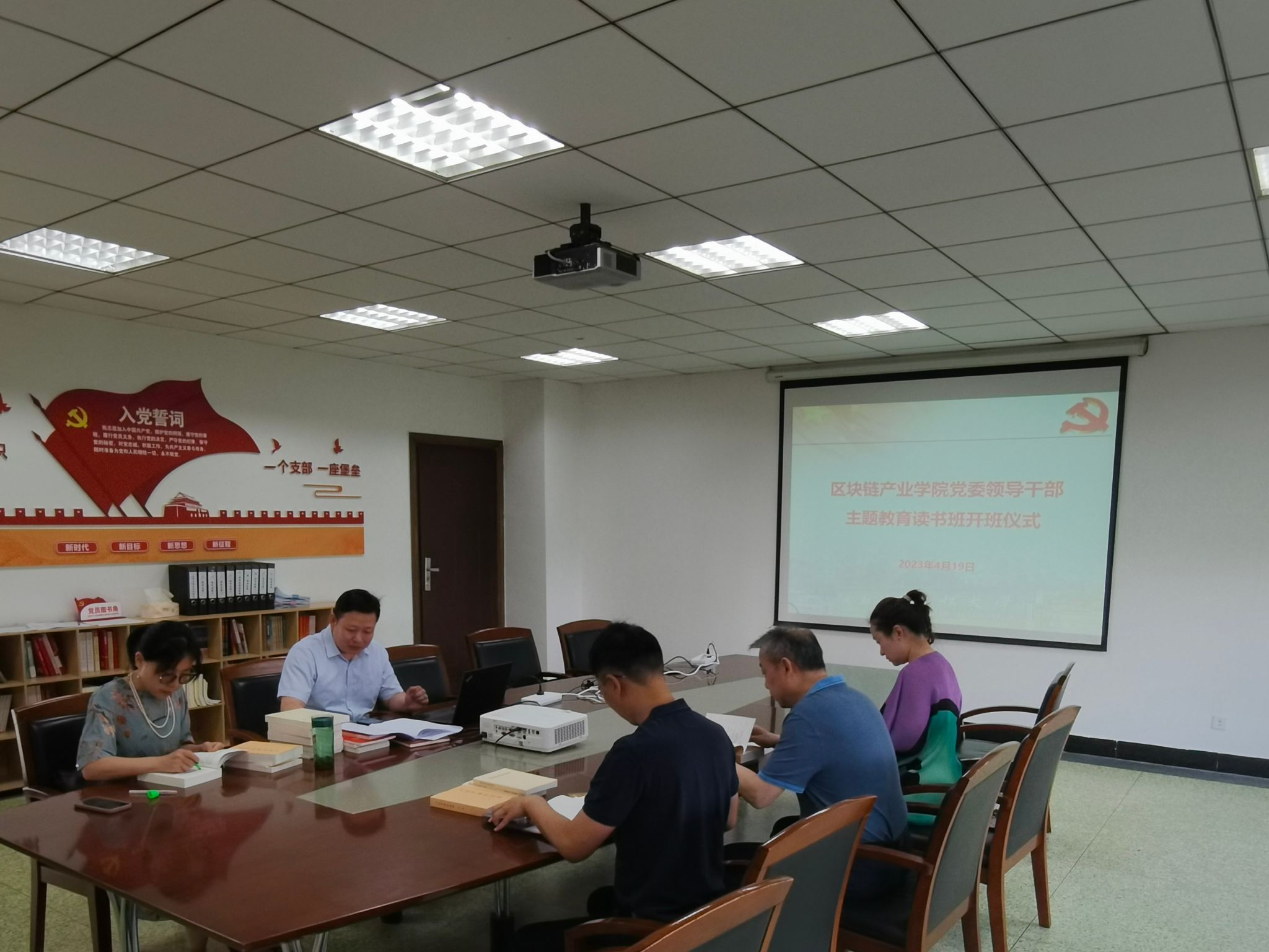 【本网讯】4月19日上午,区块链产业学院处级领导干部学习贯彻习近平新时代中国特色社会主义思想主题教育读书班开班仪式在信息楼三会议室举行。学院党委书记林细俤、院长李飞、副书记姜宇忠、副院长邹茂扬参加开班式。会议由林细俤主持。