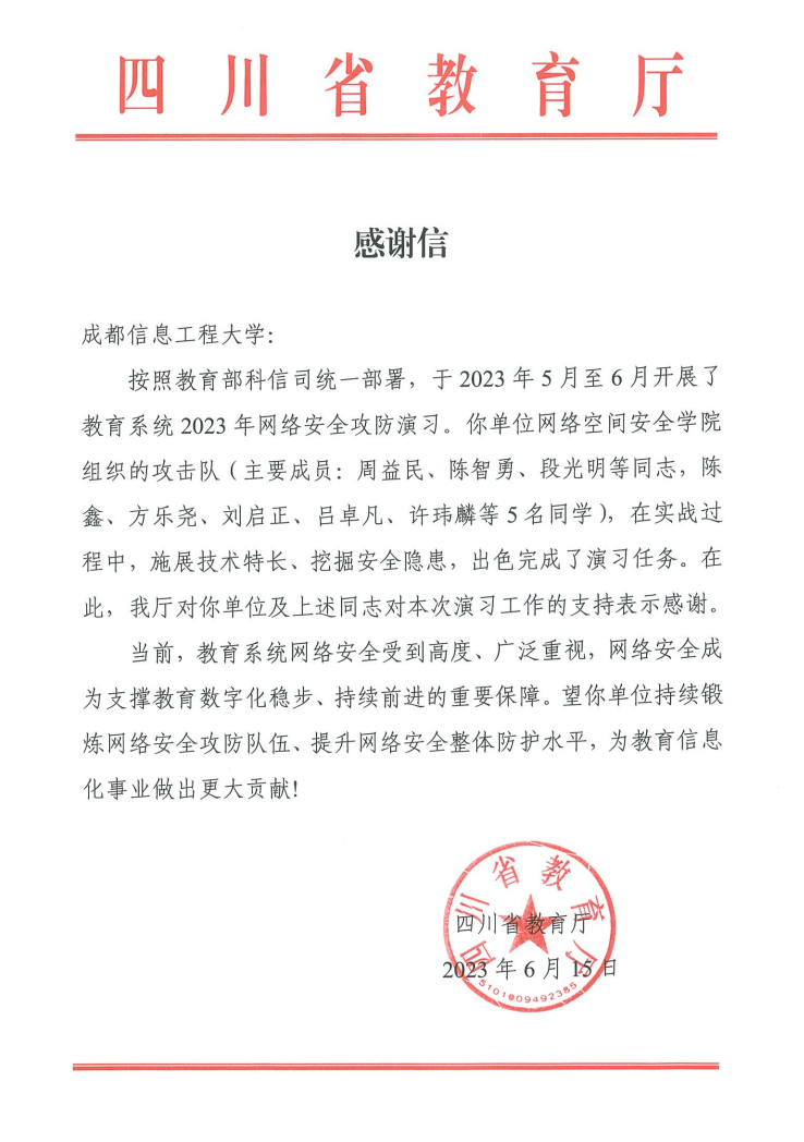 来源:四川省教育厅 作者:四川省教育厅  日期:2023-06-16  审核:新闻中心  点击: