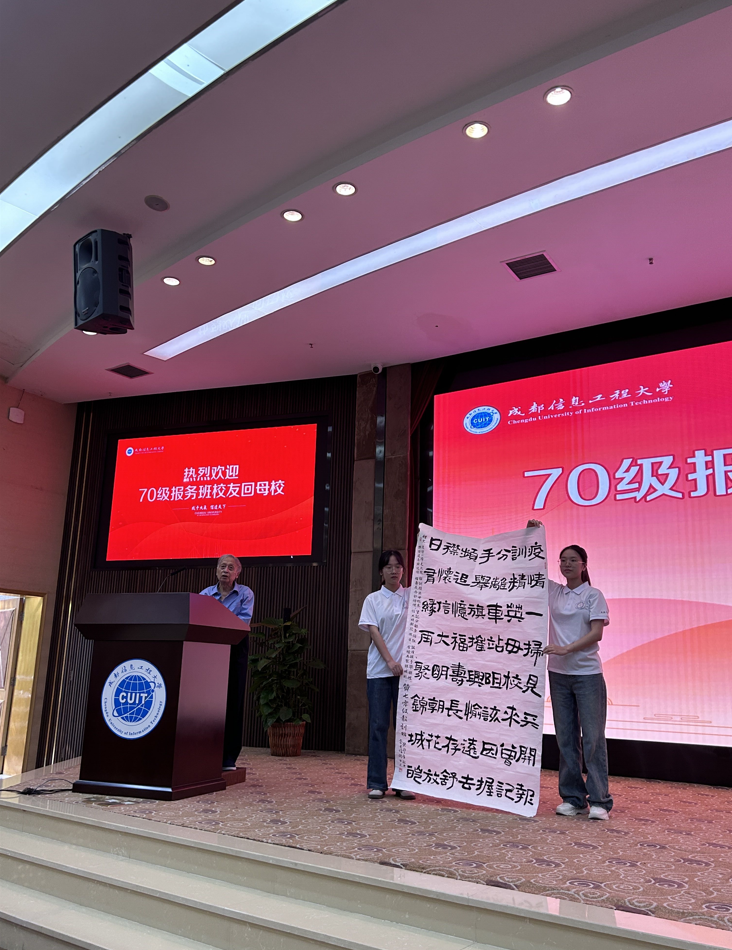 何建新代表学校对70级报务班校友重返母校表示热烈的欢迎,并结合自己的成长经历,与大家一起分享了学校的发展历程。学校源于1951年的西南空军气象干部训练大队,1956年改制为中央气象局成都气象学校,1978年升格为成都气象学院,2003年获得硕士学位授予权,2015年更名为乐动在线登录,现已成为中国气象事业、国家统计事业、国防建设事业和四川信息产业人才培养和科学研究的重要基地。他说,学校的发展,离不开全体师生员工的共同努力,离不开上级主管部门的关心指导,更离不开广大校友的鼎立支持。校友是母校最宝贵的财富,母校是校友最温暖的家园。学校的命运与每一位校友血脉相连,学校未来的发展更离不开广大校友的关心和支持。在此,我代表学校向长期以来关心母校、为母校赢得荣光、做出贡献的校友们致以崇高的敬意!