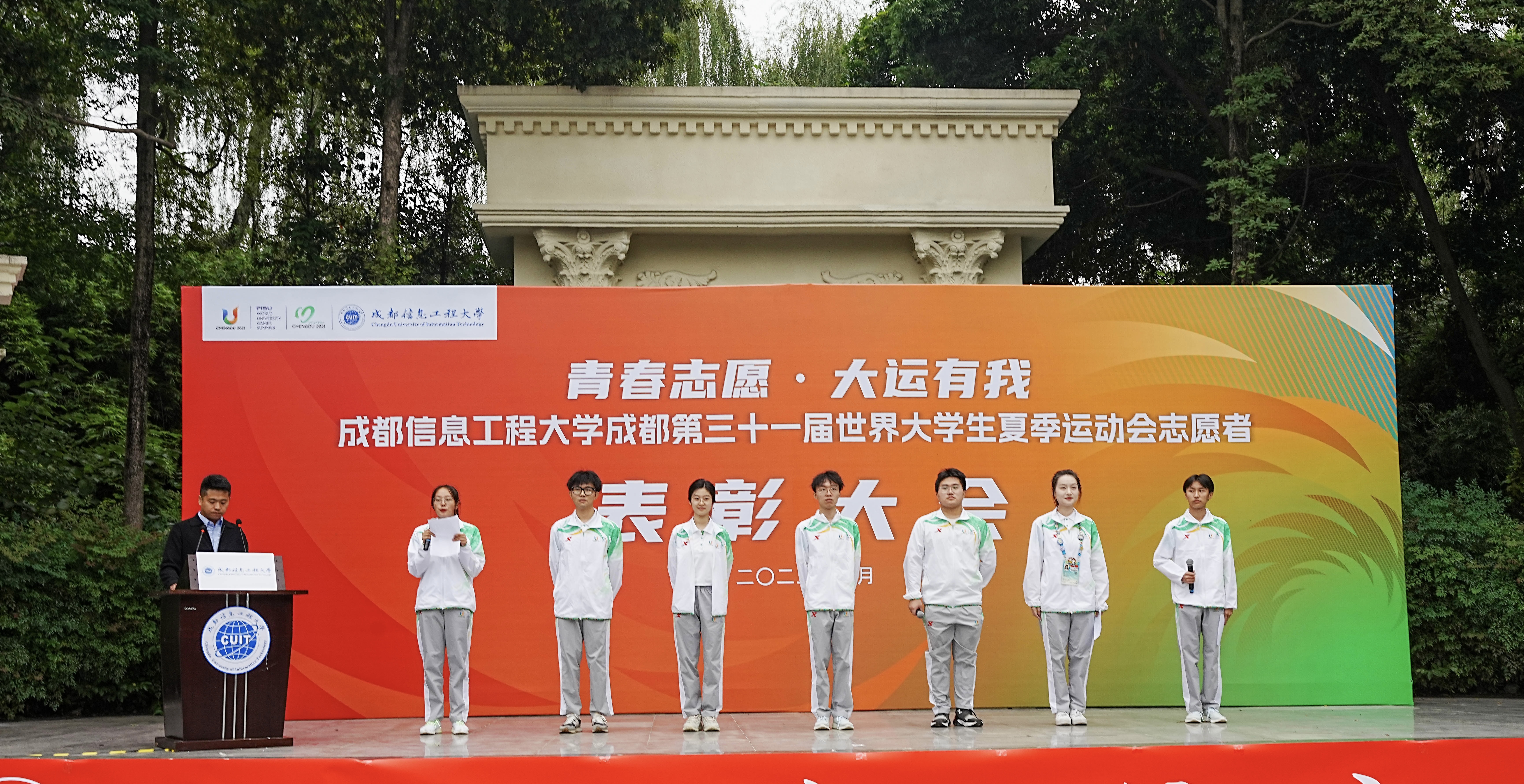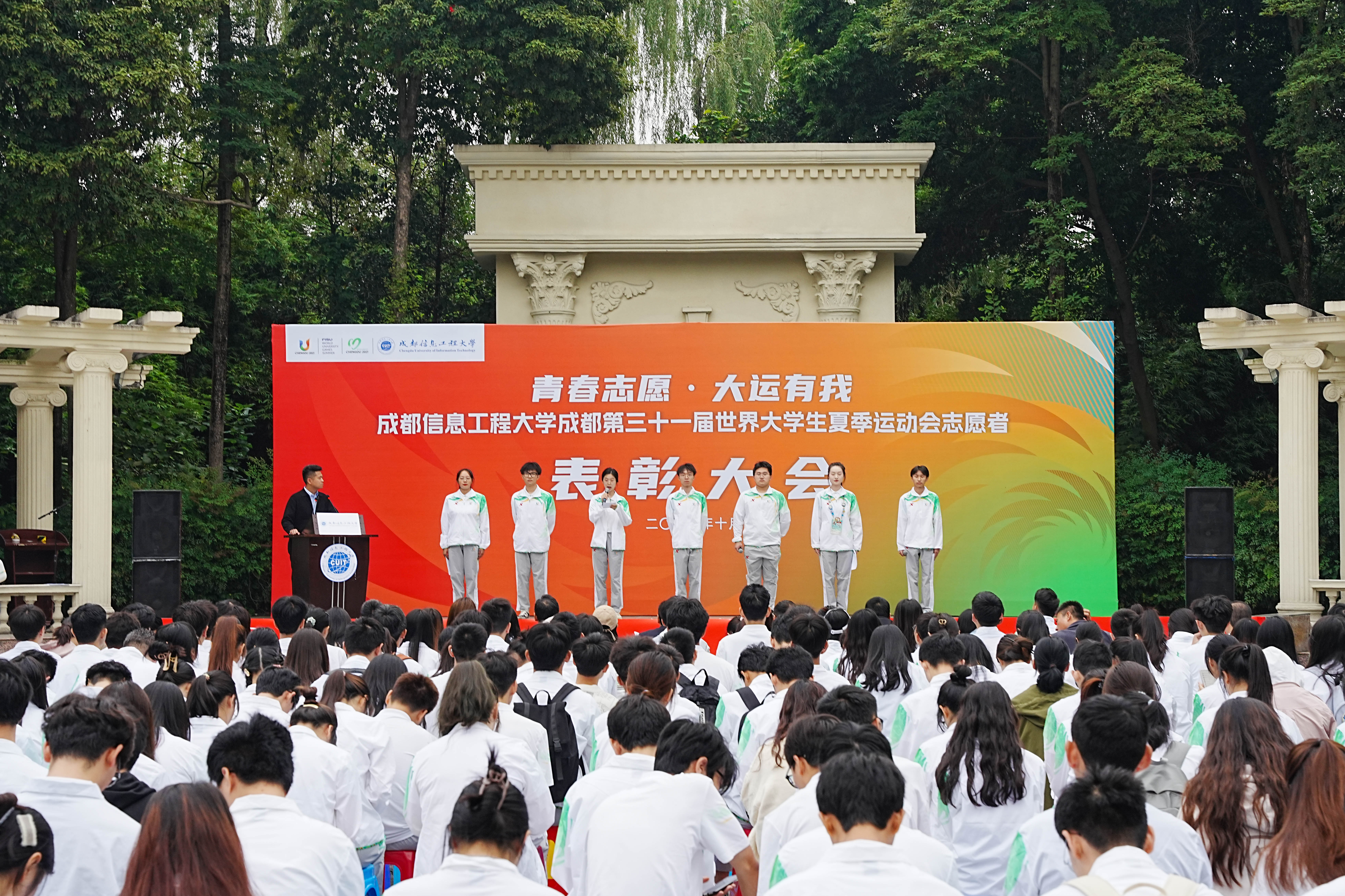马洪江在表彰大会上讲话,他代表学校党委与行政向第31届世界大学生运动会中辛勤奉献的“小青椒”志愿者们表达了赞赏与感谢。他说,志愿者们从赛事服务到礼宾接待,从场馆运行到文化展示,在各自岗位上激情奉献,尽显东方古国的热情周到,以无限的活力、出色的服务,赢得了国际大体联官员、各代表团成员以及大运会执委会的一致好评。炎炎夏日志愿者们依旧坚守岗位,无数个早出晚归大家从未放弃,不规律的一日三餐同学们没有一声怨言,志愿者们展现出了成信青年的青春风采和使命担当,成功架起了与世界青年沟通交流的友谊桥梁。他希望,同学们要延续优良作风,保持坚守实干的精神,做有理想、敢担当、能吃苦、肯奋斗的新时代好青年;继续发挥引领作用,总结大运会志愿者工作中好的做法,做好志愿者工作的传帮带,在以后的学习、工作中作好表率,当好形象大使;好好珍惜这次永生难忘的大运之旅,并将其化作珍贵的回忆,不断激励自己在未来继续向世界传递中国青年声音。