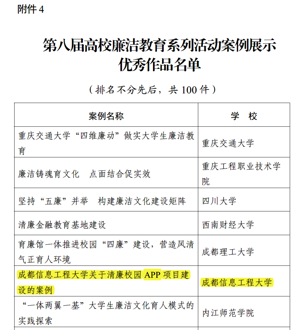 【本网讯】近日,由教育部办公厅主办的“廉洁润初心 铸魂担使命——第八届高校廉洁教育系列活动”评选结果公布,由学校纪委牵头报送的“清廉校园APP项目”被评为案例展示优秀作品,由乐动党委宣传部推荐报送的征文作品《倡清廉学风,扣好廉洁人生第一粒扣子》被评为校园征文优秀作品,入选项目数位列四川省内高校第三。