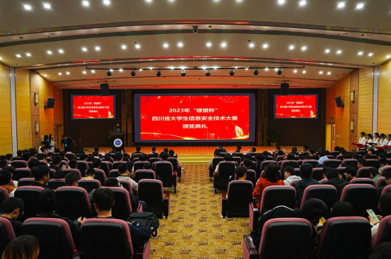 10月22日下午,大赛在乐动航空港校区国际会议厅举行颁奖典礼。学校副校长舒红平教授、四川省公安厅反诈中心主任李文德、四川省委网信办网络安全处副处长高沈、四川省网络空间安全协会副秘书长周成龙、绿盟科技集团股份有限公司生态合作部总监寇谏、南京赛宁信息技术有限公司总经理黄玉杰、成都高新策源投资集团有限公司丁郅雅,以及学校相关部门领导和嘉宾参加了本次颁奖典礼。