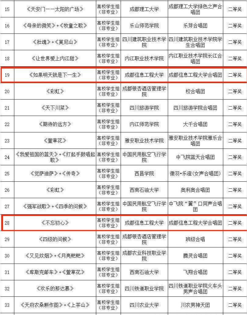 【本网讯】近日,由四川省教育厅主办,四川音乐学院承办的“音润心灵 向美而行”首届西部学校音乐周展演活动在成都城市音乐厅成功举行。乐动报送的合唱作品《如果明天就是下一生》《不忘初心》荣获高校学生组(非专业)二等奖;学校获本次活动优秀组织奖。