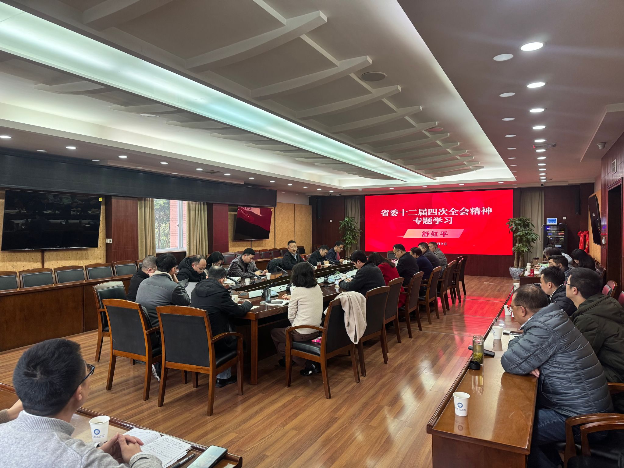 【本网讯】1月9日上午,学校副校长舒红平在第七会议室开展省委十二届四次全会精神专题宣讲。科技处、国内合作处(校友办公室)、云南研究院、信息中心、图书馆、网络空间安全学院、统计学院、区块链产业学院等单位党政领导及党员代表参加。