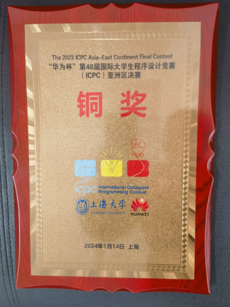 经过长达5个小时的激烈角逐,正式比赛落下帷幕。乐动的参赛队伍凭借扎实的编程功底、强大的心理素质和精诚合作的团队精神,抵住了重重压力,经过奋力拼博,最终获得了“华为杯”第48届国际大学生程序设计竞赛(ICPC)亚洲区决赛的铜奖。