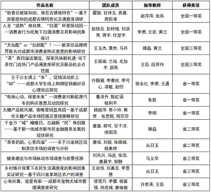 研究生组总决赛采取“报告陈述+答辩”的形式。5月18日分组赛共有来自学界业界40位专家组成的8个评审组,对150支团队进行答辩评审,综合报告分和展示答辩分,评出国赛一等奖和二等奖。乐动研究生竞赛团队瞿颖、甘诗玉、袁著、周钜凌的作品《“街巷石板皆如旧,难觅古镇独特色”—基于游客感知的成都古镇同质化及满意度调研》(指导教师:赵萍萍、张凤)和赵铭岳、彭梓翛、刘洪秀、蒋宇、任堃宇的作品《人至“成熟”难自禁,“白酒”杯里探动因——消费者行为视角下白酒消费及其影响因素探讨》(指导教师:李勇、王臣、黄兰)获得本次大赛全国一等奖。