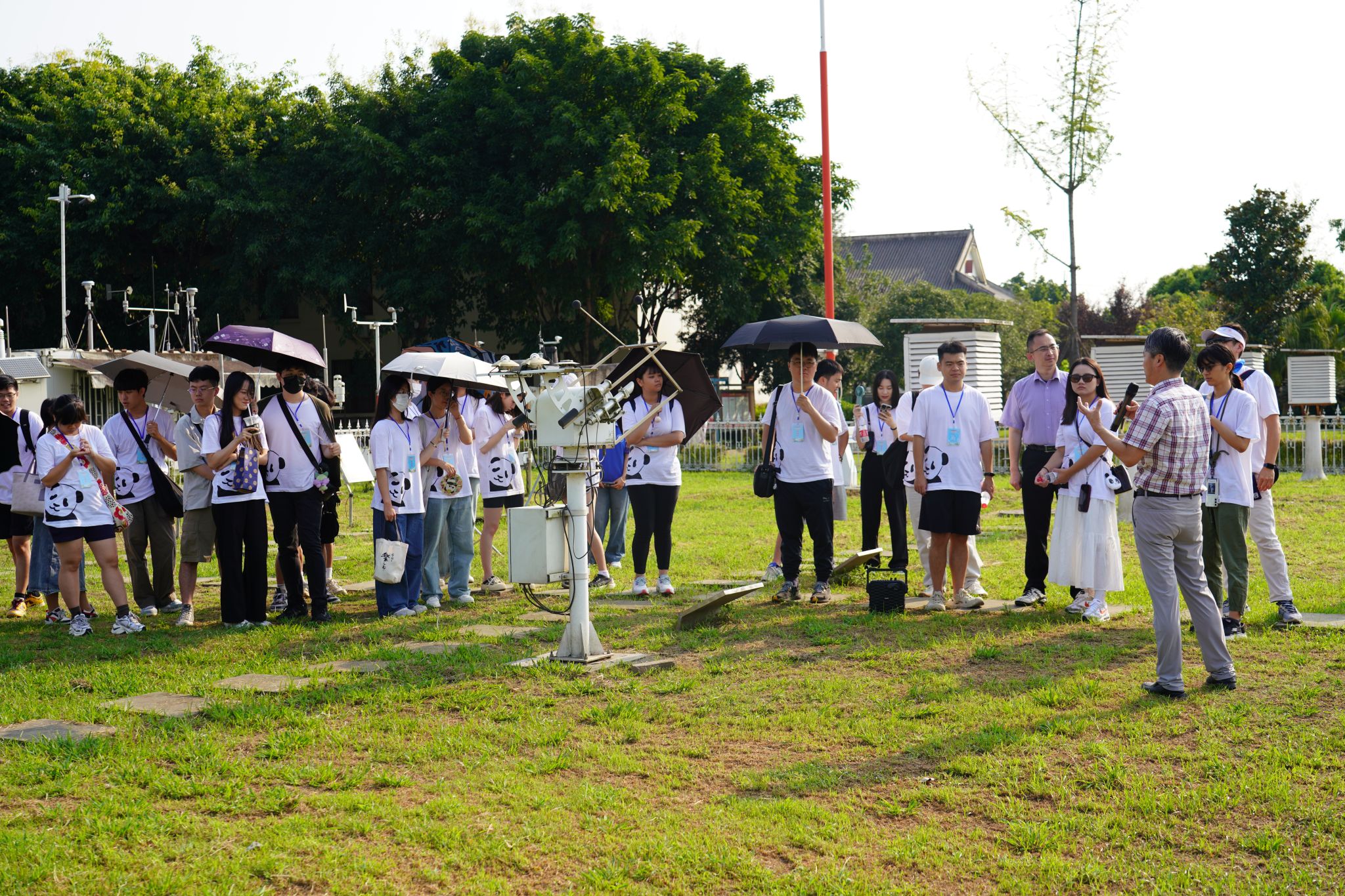首先,台湾师生参访了乐动国家级气象科普基地。电子工程学院教授们为台湾师生深入讲解了众多气象观测设备的运行原理和分析过程,并讲授了智能自动气象站、聚焦式日照计等仪器的工作原理和实际应用,以及科技在气象领域的广泛应用。