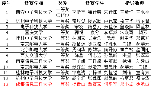 全国一等奖获奖高校