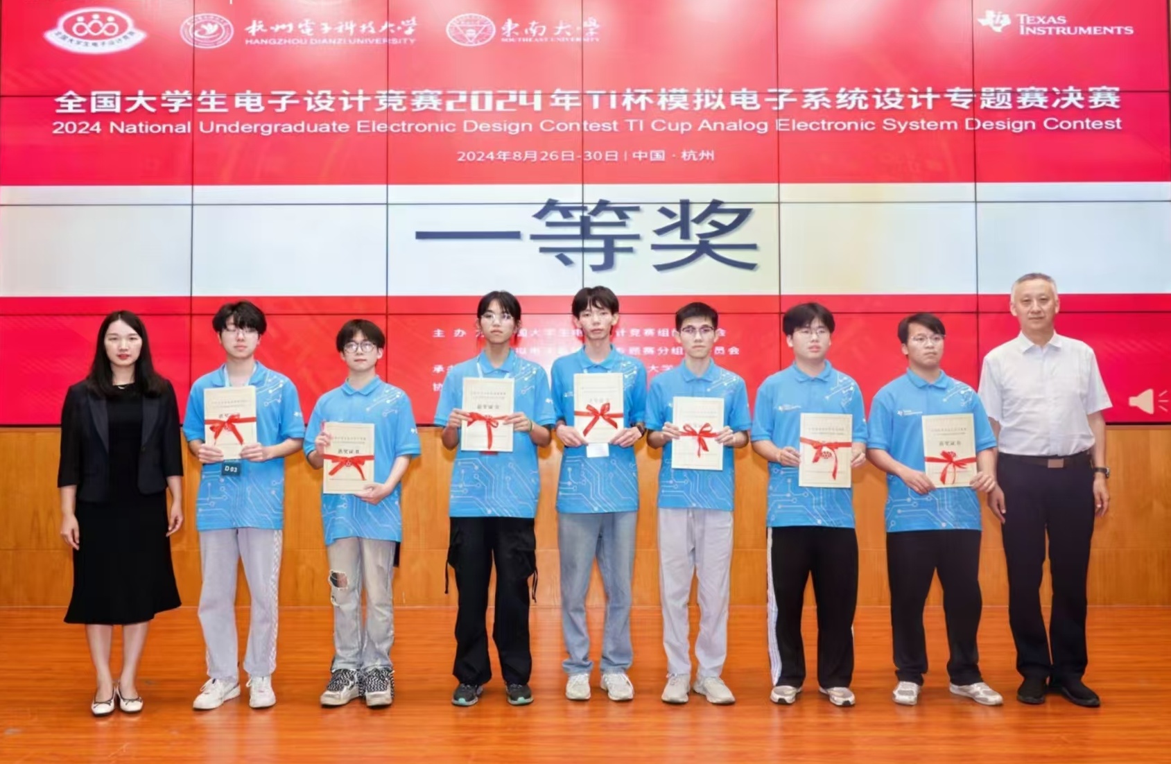 【本网讯】8月30日,由全国大学生电子设计竞赛组委会主办,杭州电子科技大学、东南大学承办的2024年全国大学生电子设计竞赛TI杯模拟电子系统设计专题赛决赛在杭州电子科技大学完美落幕。此次比赛分为初赛和决赛两个阶段,初赛为各省市大学生电子设计竞赛,经全国1000多所高校,超过56100名学生初赛激烈角逐后,共有110所大学的158支学生队伍成功晋级决赛,决赛产生了13个一等奖(获奖率8.2%),26个二等奖及57个三等奖。