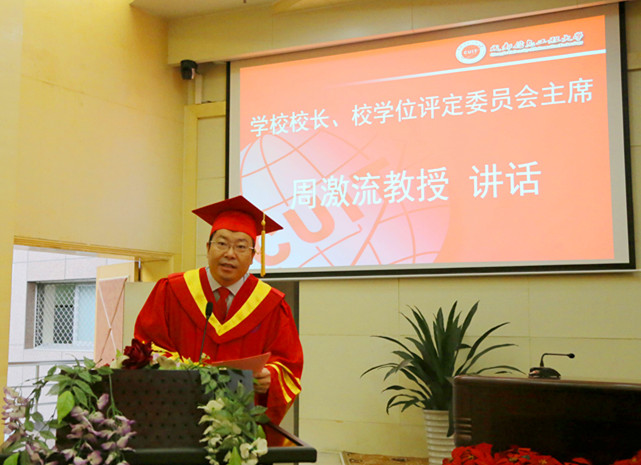 周激流对即将跨入社会的研究生们提出了殷切的希望:希望同学们砥砺德行,立德立人,甘愿奉献、勇于付出,在投身国家建设发展的伟大实践中贡献聪明才智,在实现中华民族伟大复兴的中国梦历史进程中书写美好人生;希望同学们笃行实干,勇于创新,永远保持科学严谨、实事求是的学术精神,以更加开阔的国际视野和全局视角,抓住机遇,创造未来;希望同学们永远心系母校,大力弘扬“成于大气、信达天下”的校训精神,让这种精神成为成信学子一生的财富,诚信做人、大气做事,做一个服务于社会、有益于社会的人!