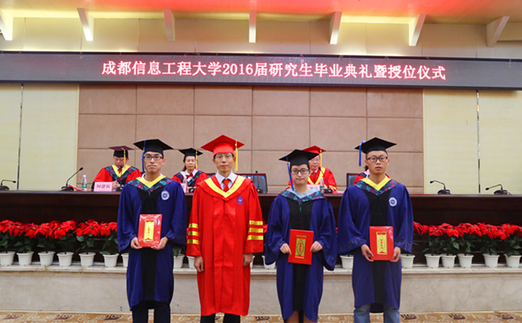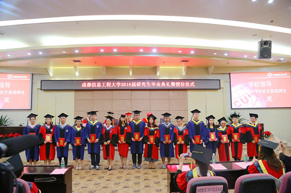 党委书记赖廷谦宣读了《四川省教育厅关于公布2016届四川省优秀大学毕业生评选结果的通知》,并为获奖学生颁奖。乐动于杰、张明、黄刚等三位同学被评选为2016届四川省优秀大学毕业生。校学位评定委员会主席、校长周激流宣读了2016届研究生授予硕士学位的决定,授予张翔等345名研究生硕士学位。学校领导周激流、敬枫蓉、贺盛瑜为26位校级优秀硕士学位论文获奖者一一颁奖。