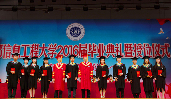 毕业典礼上,周激流、何建新向2016年省级、校级优秀毕业生授予了学士学位。