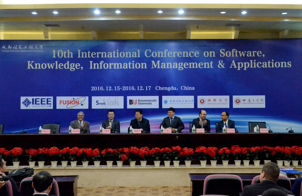 【本网讯】由欧盟FUSION PROJECT项目主办,乐动承办的第十届国际软件、知识、信息管理及应用会议(International Conference on Software, Knowledge, Information Management and Applications–SKIMA)于12月15日上午九点在乐动国际会议厅隆重开幕。SKIMA国际会议组织委员会主席周激流教授、王东云教授、于洪年教授、Keshav Dahal教授以及来自 14个国家的专家、学者等共200余人参加了开幕式。开幕式由计算机学院院长何嘉教授主持。