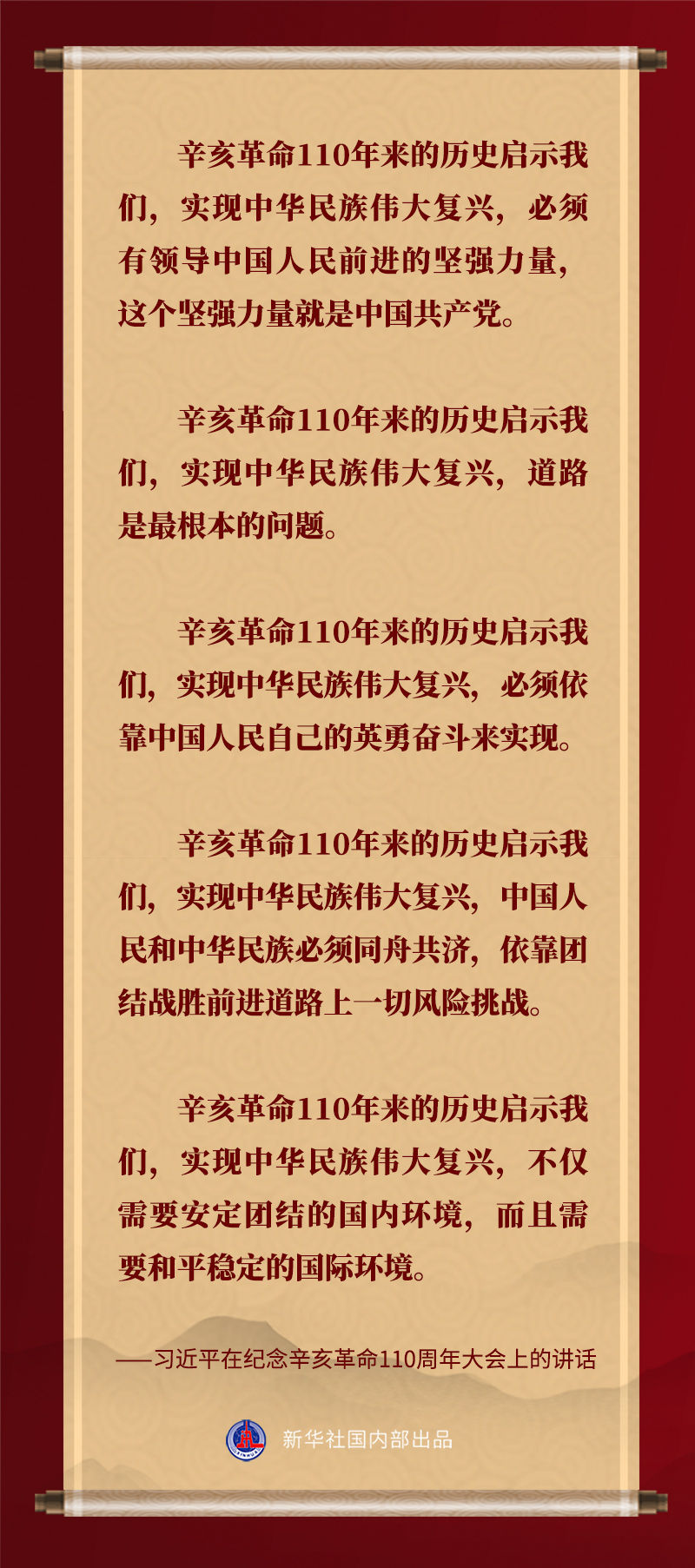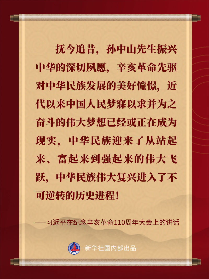 【本网讯】纪念辛亥革命110周年大会9日上午在北京人民大会堂隆重举行。习近平出席大会并发表重要讲话。