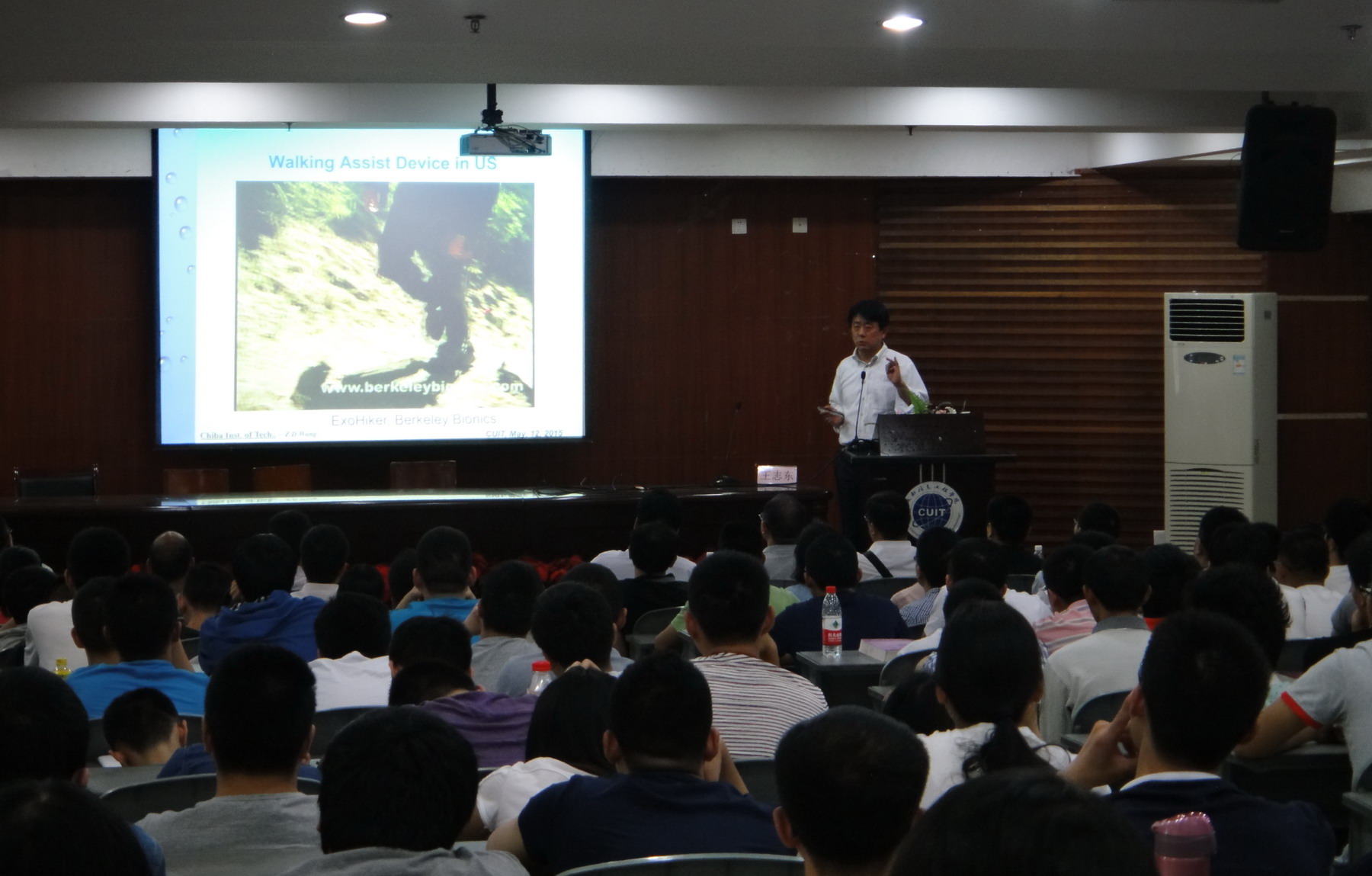 本次讲座介绍了三大部分的研究。首先展示了基于非完全约束型协调操作的多机器人协调运动的研究成果,示例中的两台机器人非常协调地完成了薄板的共同搬运;然后介绍了人机协调控制的研究成果,展示的基于人机协调控制的舞蹈机器人赢得了在场师生的惊叹;最后展示了基于人机协调的运动辅助系统和控制方法,摆脱了以往肌肉电信号为主的控制模式,提出了人体姿态基准协调辅助控制算法,以在残疾辅助方面的先进性及实用性得到很高评价。