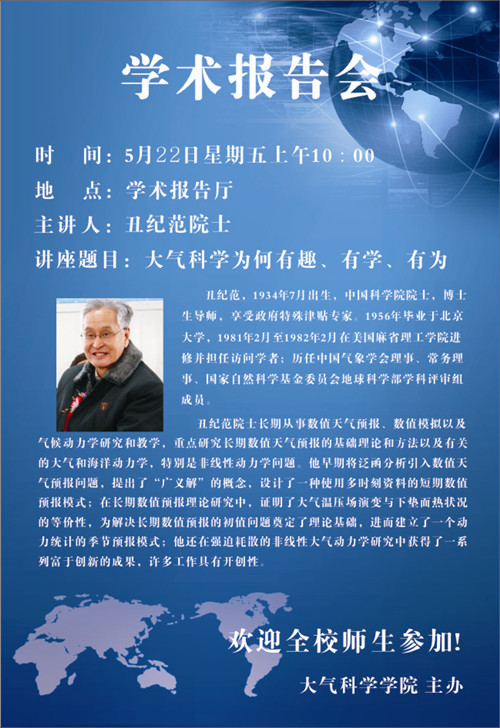 上一条:丑纪范院士应邀到乐动作题为“大气科学为什么有趣、有学、有为”的学术报告