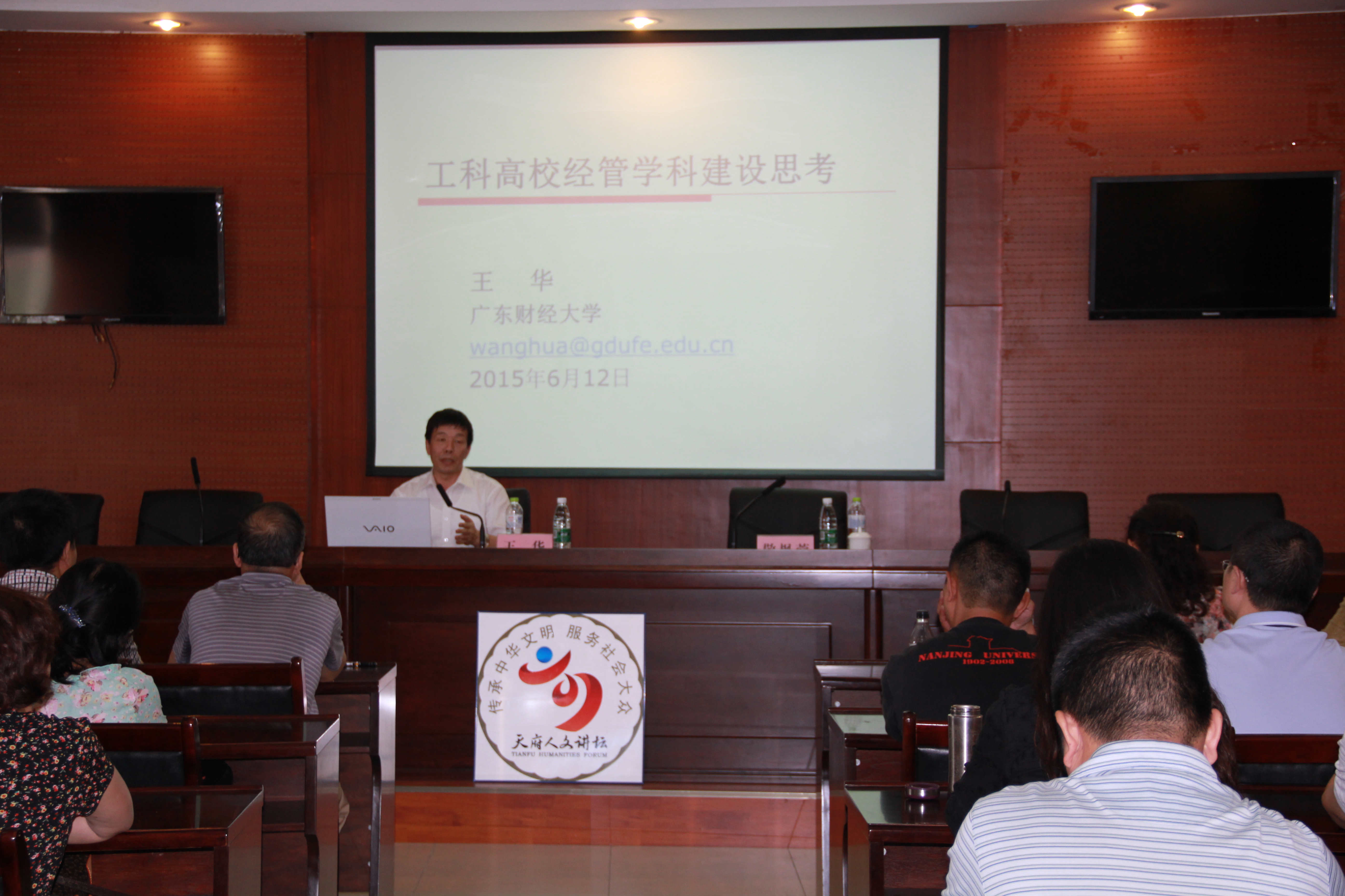 王华以乐动升大成功为引入点,对乐动升大后对经管专业学科建设提出了更高的要求,而经管学科发展的外界环境正面临着经济全球化、大数据处理、网络金融发展的冲击。王华认为,学科建设是龙头,是高等院校的一项战略任务,也是学校建设的核心内容。学科建设应该以学科方向建设为基础、以学科队伍建设为源泉、以科学研究与学术成果建设为标志、以学科基地建设为依托、以人才培养体系建设为落脚点来进行。在学科建设中要坚持凝练学科方向,树立有特色的学科方向,选择能在国内外产生重大影响或独一无二的研究方向体现方向优势,不断选择增长点;在学科基地建设中切忌小而全;科研队伍建设必须要有规划、有梯度,学术带头人要恰当;学科建设还要注意校内协同、校外协同,并要加强国际交流。最后,王华结合乐动学科现状,建议乐动经管学科建设可以结合校内的优势学科,着重在金融数学、环境会计、电子商务及大数据方面进行融合创新。