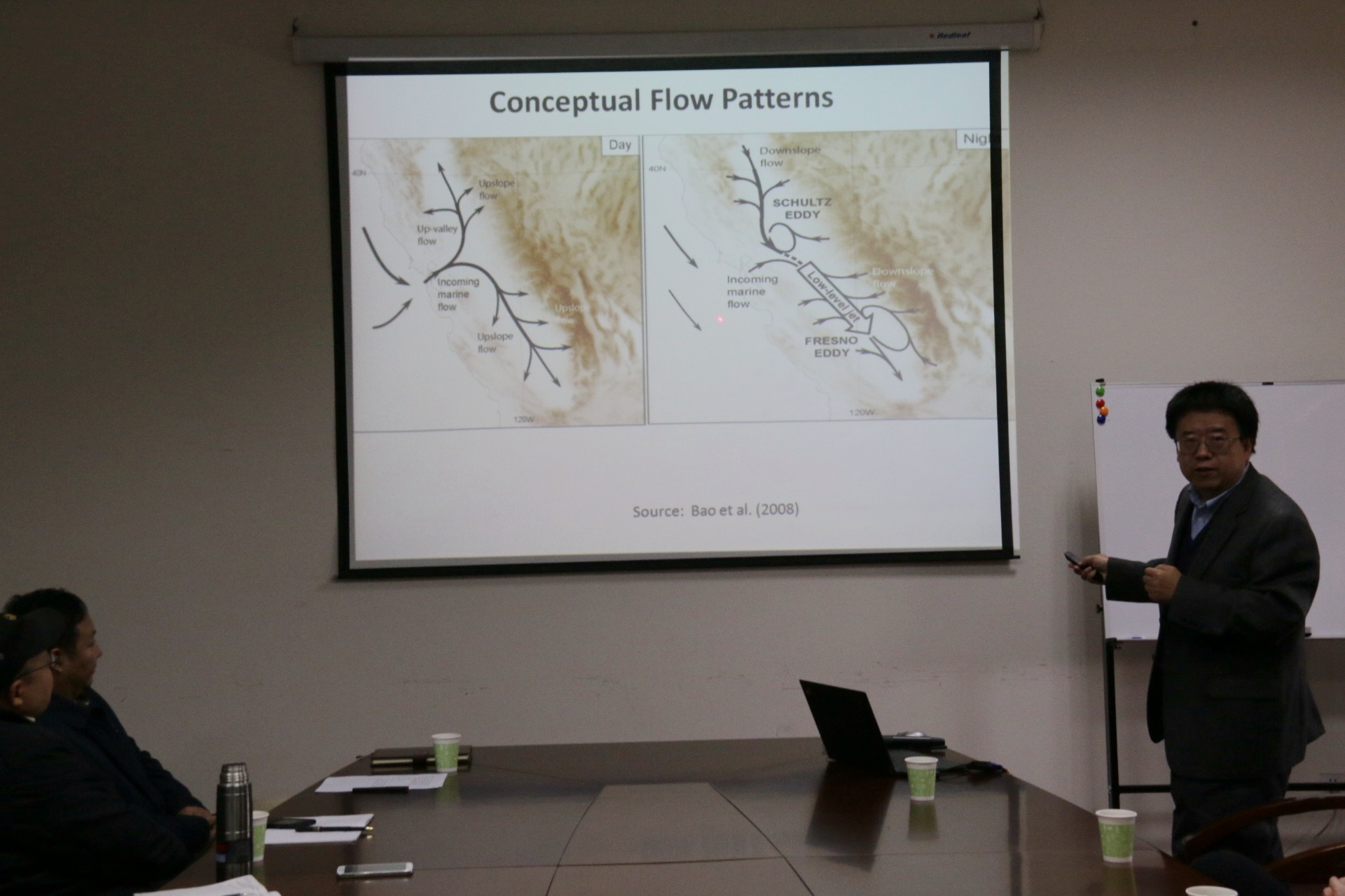 【本网讯】12月28日上午,美国国家大气研究中心刘长海博士、美国宾夕法尼亚州立大学邓爱军博士和美国国家海洋与大气管理局马再忠博士应邀来校,分别作了题为《High Resolution Regional Climate Simulations of the Water Cycle over the North America Including Potential Climate Change Scenarios》、《Effect of Data Assimilation in Numerical Weather Prediction Models》和《Himawari-8 AHI Radiance Assimilation with the GSI data assimilation system》的学术报告。报告由大气科学学院院长范广洲教授主持。