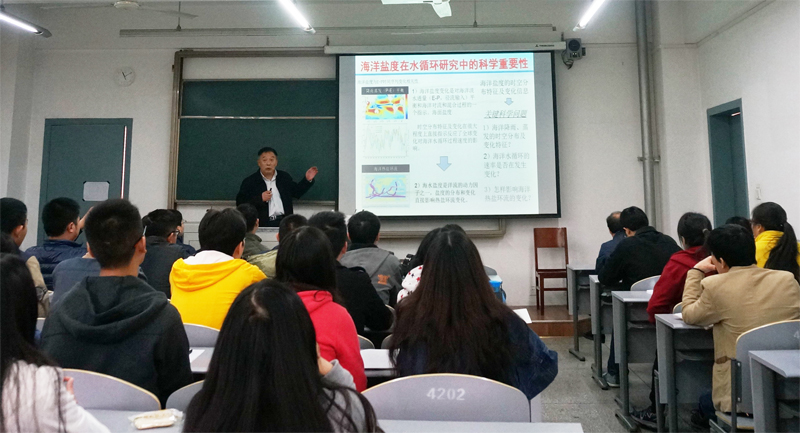 【本网讯】 3月31日上午,国家特聘专家、中科院遥感与数字地球研究所、遥感科学国家重点实验室主任施建成研究员在航空港校区作了题为“全球水循环观测卫星介绍”的学术讲座。科技处、资源环境学院相关领导及师生参加了讲座。